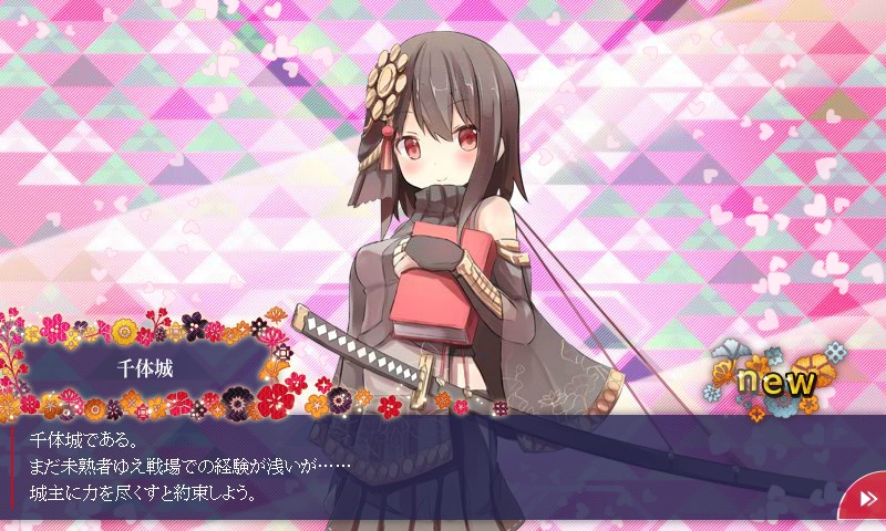 城娘ステータス: 全城娘一覧(刀 | 槍 | 槌 | 盾 | 拳 | 鎌 | 戦棍 | 双剣 | ランス | 弓 | 石弓 | 鉄砲 | 大砲 | 歌舞 | 法術 | 鈴 | 杖 | 祓串 | 本 | 投剣 | 鞭 | 陣貝 | 軍船 | 茶器 | その他 || 平属性 | 平山属性 | 山属性 | 水属性 | 地獄属性 | 無属性)初期ステータス 装備品: 刀 | 槍 | 槌 | 盾 | 拳 | 鎌 | 戦棍 | 双剣 | ランス | 弓 | 石弓 | 鉄砲 | 大砲 | 歌舞 | 法術 | 鈴 | 杖 | 祓串 | 本 | 投剣 | 鞭 | 陣貝 | 軍船 | 茶器 | その他 || 施設 || 消耗品 | 城娘: 特技(攻撃系 / 防御系 / 弱体化他) | 所持特技 | 編成特技 | 大破特技 | 特殊攻撃 | 特殊能力 | 武器切替 | 計略(伏兵以外 / 伏兵) | 都道府県別 | 令制国別 | 季節限定城娘 | 特定カテゴリ | この城娘はRE移行に伴い廃城となり、所有していた場合は以下の城娘が引き渡されます。