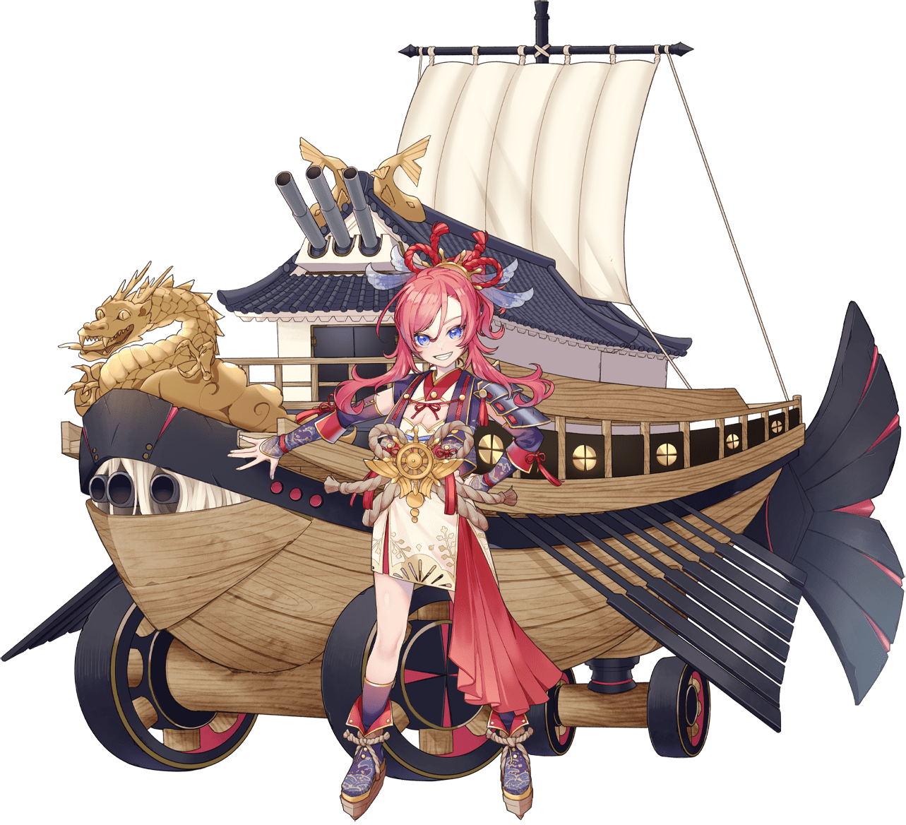 また船首にある龍の像は、実際に日本丸に取り付けられていたとされる木彫りの龍の船首像が元ネタだと思われる。