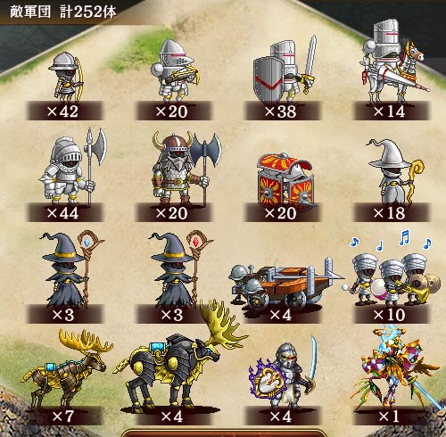 | 「大ヘラジカ形兜」などの「耐久半分以下で発動する効果」を持つ一部のエネミーが 効果の発動時にそれまでに受けていた弱体化効果が無効になってしまう不具合がある (今回の開催期間中の修正予定は無い) |