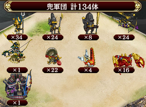 • ボス兜登場とはいえ、まだ普なら色々試せるね。飛行兜が多いので銃のみ・石弓のみ・弓矢のみの編成でもクリアできる。後半はこんな遊び出来ないだろうな -- 2016-08-20 (土) 21:30:53