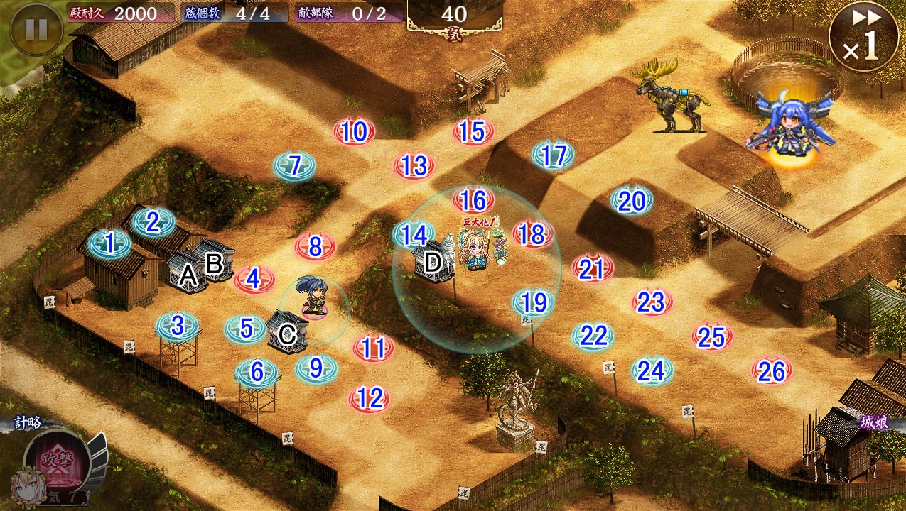 | 今回の合戦では、アテナイ・アクロポリスがお助け城娘として登場しています。 再配置や撤退を行うことはできませんが、巨大化と計略を駆使して合戦の勝利を目指しましょう。 |