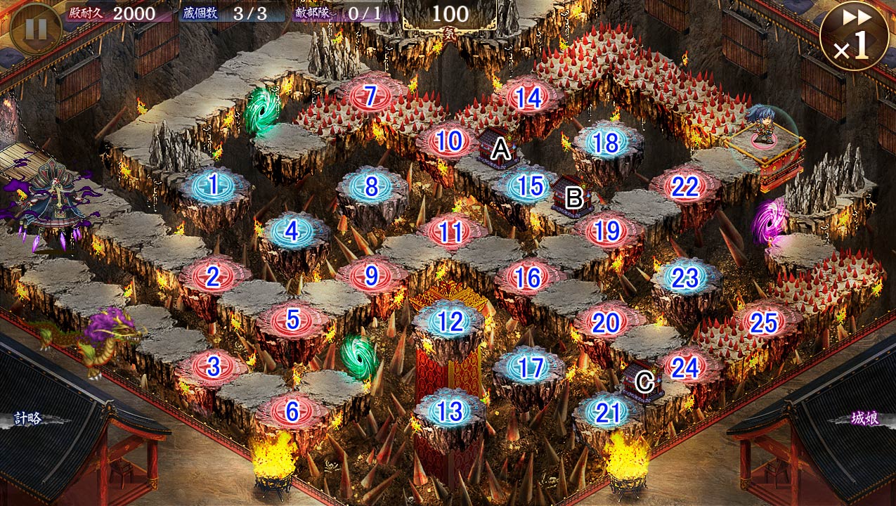 | 3 | 武神強化(針山) | 武神毛利元就の受ける状態異常,後退効果を無効 耐久,防御,移動速度,攻撃対象数が上昇 |