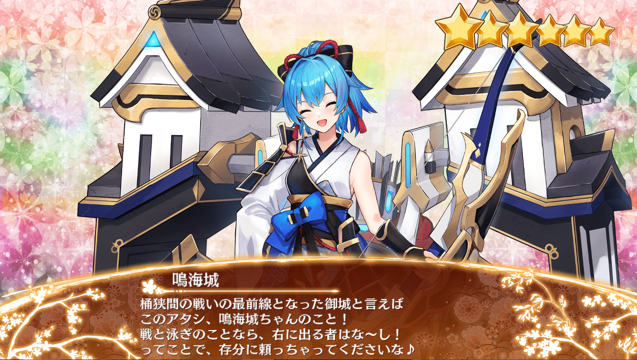 城娘ステータス: 全城娘一覧(刀 | 槍 | 槌 | 盾 | 拳 | 鎌 | 戦棍 | 双剣 | ランス | 弓 | 石弓 | 鉄砲 | 大砲 | 歌舞 | 法術 | 鈴 | 杖 | 祓串 | 本 | 投剣 | 鞭 | 陣貝 | 軍船 | 茶器 | その他 || 平属性 | 平山属性 | 山属性 | 水属性 | 地獄属性 | 無属性)初期ステータス 装備品: 刀 | 槍 | 槌 | 盾 | 拳 | 鎌 | 戦棍 | 双剣 | ランス | 弓 | 石弓 | 鉄砲 | 大砲 | 歌舞 | 法術 | 鈴 | 杖 | 祓串 | 本 | 投剣 | 鞭 | 陣貝 | 軍船 | 茶器 | その他 || 施設 || 消耗品 | 城娘: 特技(攻撃系 / 防御系 / 弱体化他) | 所持特技 | 編成特技 | 大破特技 | 特殊攻撃 | 特殊能力 | 武器切替 | 計略(伏兵以外 / 伏兵) | 都道府県別 | 令制国別 | 季節限定城娘 | 特定カテゴリ |