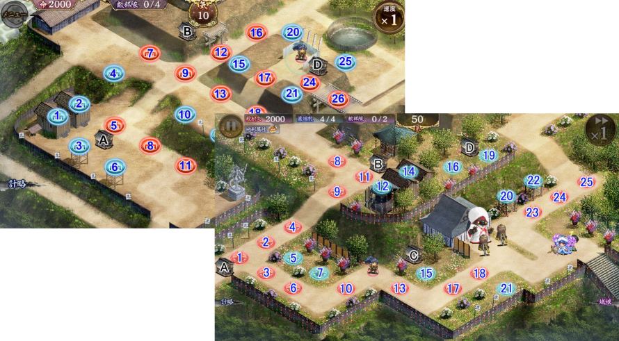 状況説明足らずですみません、後半で気をためて15と21に遠距離おいて一気に巨大化させて力士を落とすつもりだったのですが、力士が殿まで13あたりに来たところで21においたサンレオが右湧きの桃兜とか間諜とかを狙い始めて何度も失敗をしまして。 --
