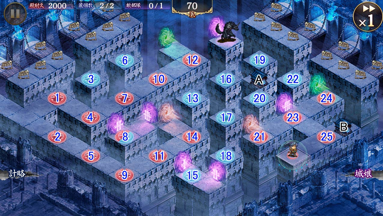 | この合戦では、合戦中の敵が5体撃破される毎に、殿・城娘・伏兵の攻撃範囲が1%低下します。(最大100%) |