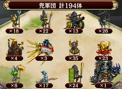 • 19:柳川(石弓) 5:尾山(槍) 8:名古屋(槌) 6:鶴ヶ丘(歌舞) 9:駿府(弓) 12:リーズ(弓) 23:兵庫(大砲) 2:府内(刀) で、難全蔵防衛大破無し。 最初はカーナーヴォンでやったけど、難で倒しきれそうになかったので変更。府内で足止めを付与した名古屋に殴り合ってもらった。あらかじめ2回巨大化しておけば、後は巨大化回復で耐えられた。 佐竹毛虫は普通でも弓1人では抜かれかけたので、2人にして対処した。 右上からくる敵は兵庫が1人でほぼ処理してくれた。 柳川は巨大化を早めるために入れた。 注意点は、序盤に尾山が小槌の連続攻撃で一気にダメージを受けてしまうことと、終盤にボスの進軍に合わせて雑魚の群れが左から大量に出てくること。 -- 2019-02-17 (日) 01:44:42