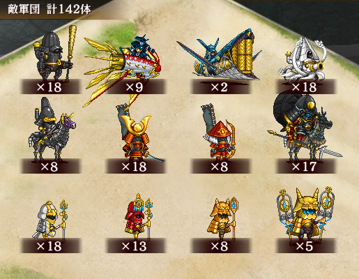| 今回の合戦に登場する以下の兜は、特殊効果により次の効果が発動しています。 特殊効果『至貴なる本宗』 耐久が2倍になり、自身が受ける攻撃、防御低下効果を無効化する。 ※今回対象の兜:烏天狗形兜、錫杖型兜、鬼形兜、強化型鬼形兜 |
