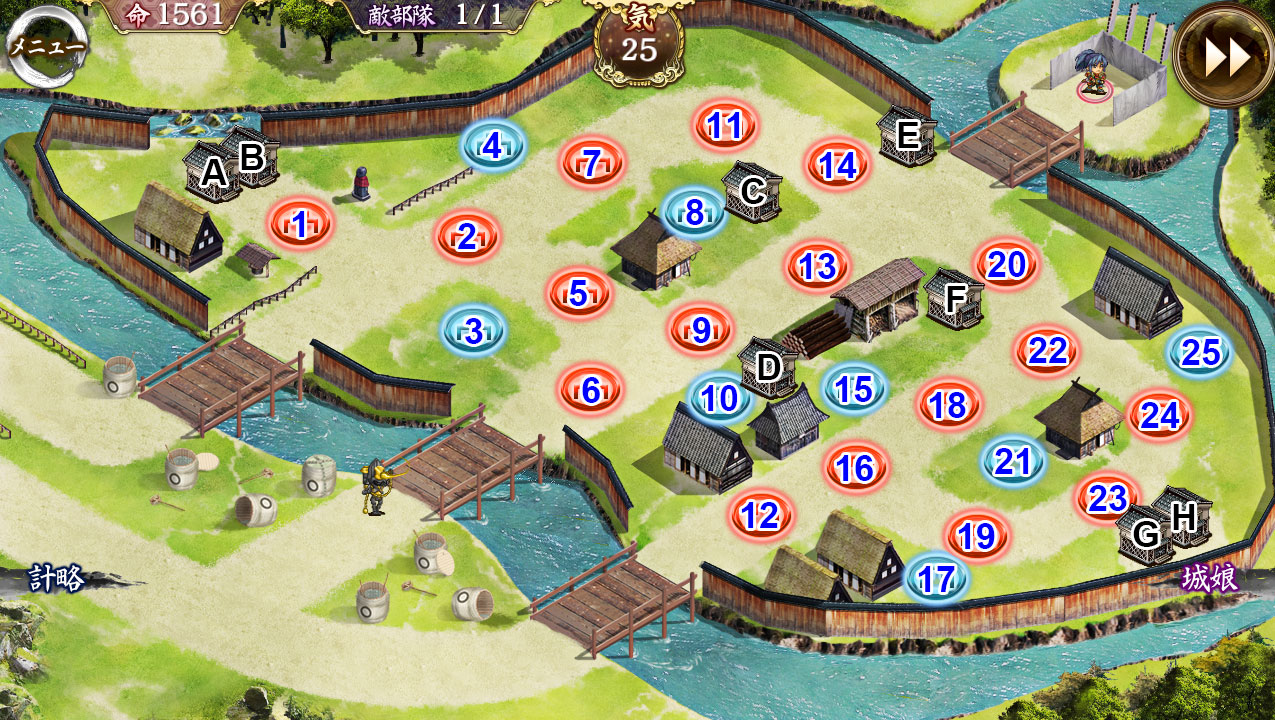 少数の猿型兜がMAP南方を大回りして蔵G・Hに向かうので、こちらも討ち漏らしに注意。
