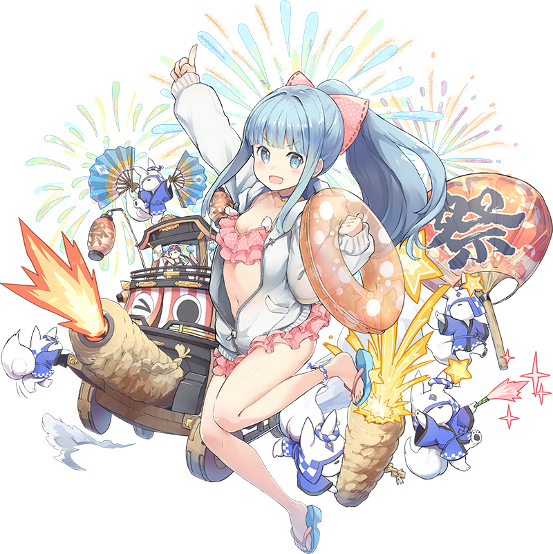 今回限定城娘に選ばれたのは、車山を曳いていること、大砲という花火をイメージしやすい武器種であること、実際花火大会が開かれていること、夏に石上げ祭りが行われていること、からかもしれない。